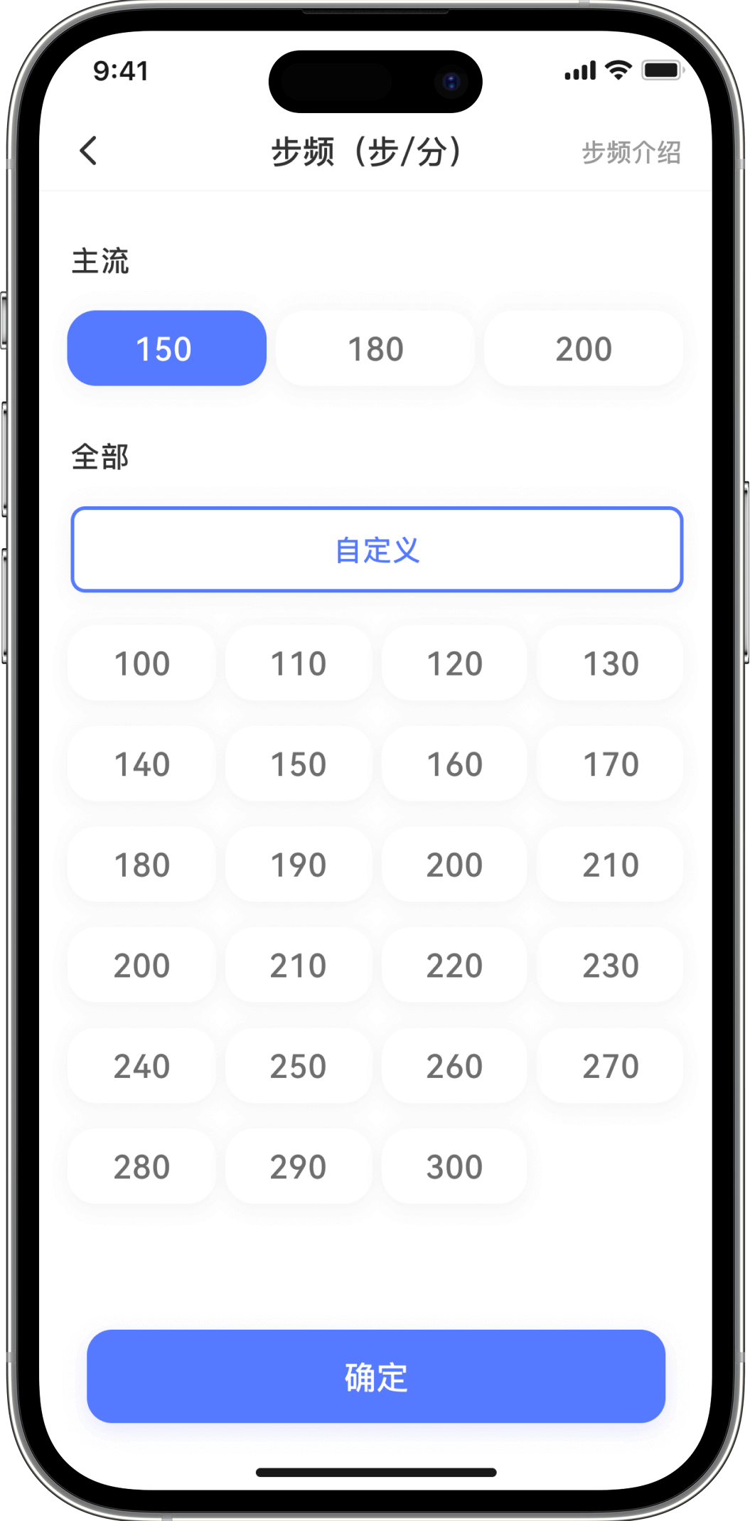 支持步频调节,根据您的日常习惯选择你的跑步步频,包含火爆日本的180bpm节拍、150bpm节拍、200bpm节拍等,快定制你的跑步节拍吧!